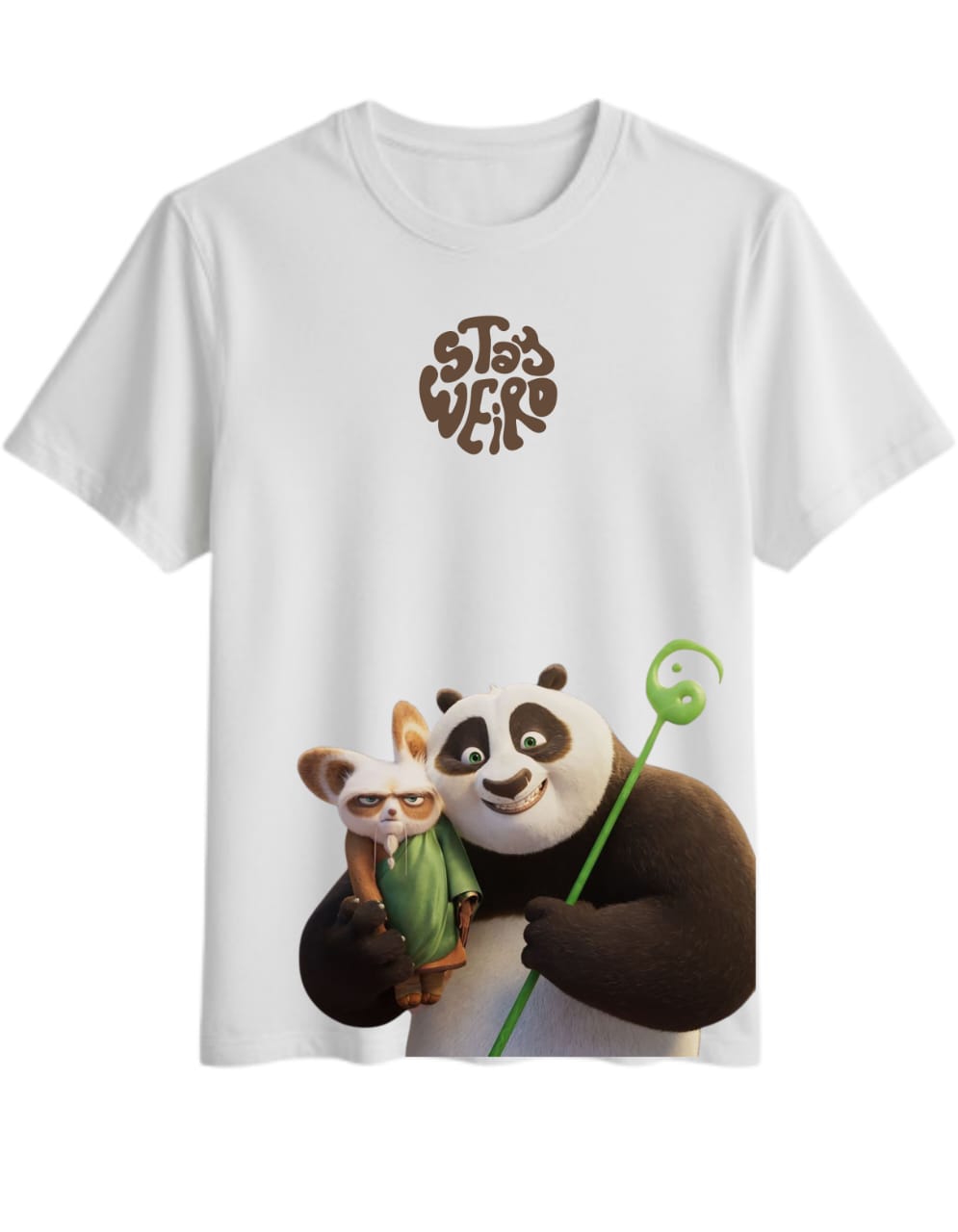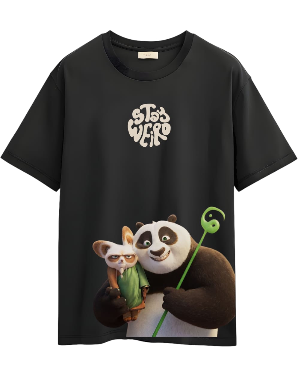 • Bold “STAY WEIRD” typography at the chest